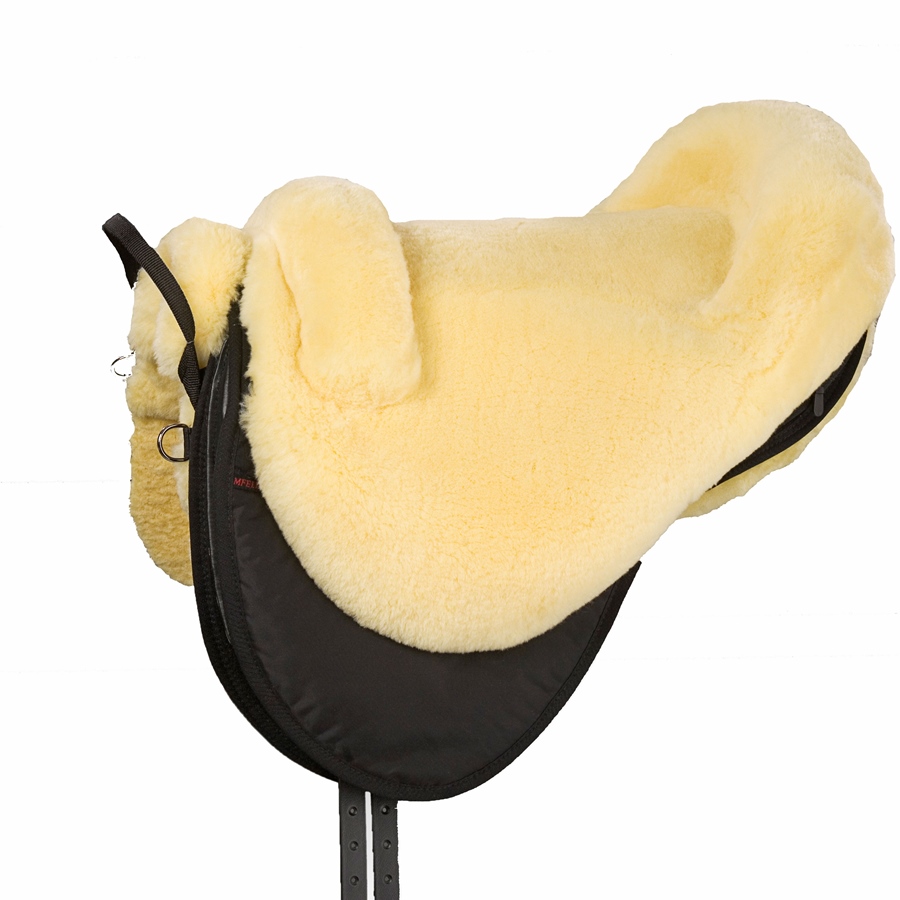 Der Christ Cloud Spezial Plus Lammfellsattel ist ein super Sattel! Er besitzt Lederpauschen aus Klett, so das Du ihn ganz bequem an deinen Reitersitz anpassen kannst. Somit bekommst Du den perfekten Sattel für Dich. Außerdem hat er eine optimale Passform dank Hinterzwiesel und kann über die Verbundschaumeinlagen an Dein Pferd angepasst werden. So hast Du einen bequemen Sitz und dein Pferd extra Rückenschutz. Der Fellsattel hat auf der Unterseite komplett Lammfell. Wie bei den Satteldecken Spezial ist die Wollhöhe im Kissenbereich 30 mm und an den Seiten jeweils 15 mm. Wie bei allen Christ Fellsätteln können Steigbügel angebracht werden. Verbundschaumeinlagen sind serienmäßig im Lieferumfang enthalten. Besitzt Lederpauschen aus Klett Ist bequem an den Reitersitz anzupassen Optimale Passform durch Hinterzwiesel Unterseite komplett aus Lammfell Wollhöhe im Kissenbereich 30 mman den Seiten 15 mm Anbringung von Steigbügeln möglich Verbundschaumeinlagen im Lieferumfang enthalten Material Lammfell