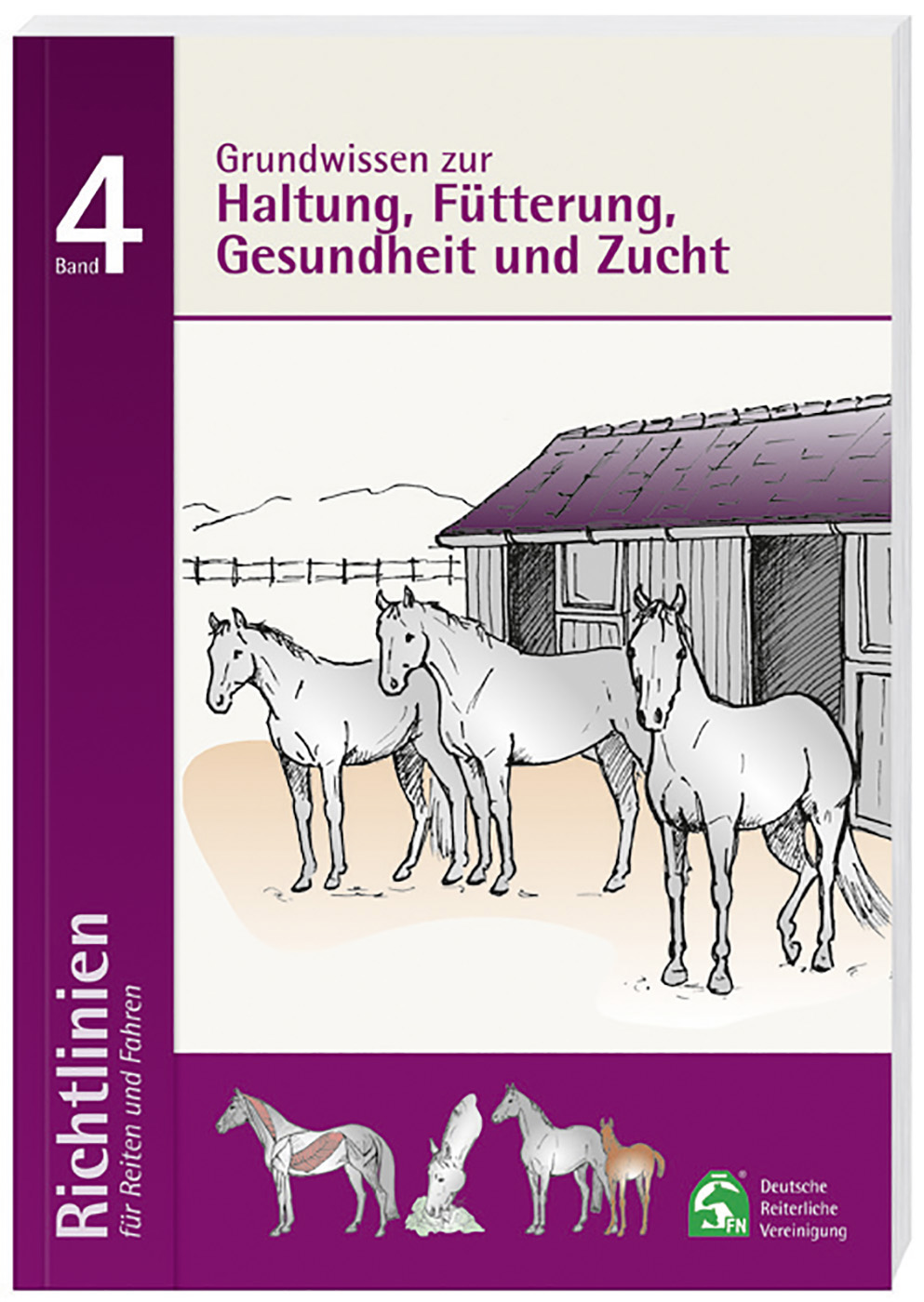 Die Richtlinien für Reiten und Fahren sind mit ihren verschiedenen Bänden das Standardwerk für das Grundwissen rund um das Pferd und den Reit, Fahr und Voltigiersport. Für den internationalen Gebrauch sind sie teilweise in englischer Sprache übersetzt worden.Die Richtlinien Band 4 enthalten das Rüstzeug für den artgerechten Umgang und der tiergerechten Haltung des Pferdes. Sie vermitteln Kenntnisse über die Verhaltensweisen der Pferde, über ihre richtige Haltung und Fütterung sowie über angemessene Pflege und Hygienemaßnahmen.Weiterhin werden in diesem Band die Grundlagen der Anatomie und Physiologie des Pferdes sowie die wichtigsten Pferdekrankheiten abgehandelt. In dem Kapitel Pferdezucht sind Tipps und Informationen für Theorie und Praxis zu finden. Die Richtlinien Band 4 dienen der Vorbereitung auf Reitabzeichen und Ausbildungsprüfungen nach der jeweils aktuellen APO und gehören zur Ausrüstung eines jeden verantwortungsvollen Pferdefreundes und halters.Die Inhalte werden in jeder neuen Auflage dem aktuellen Kenntnisstand der Fachwelt angepasst. So auch in der 19. Auflage (2019)Zielgruppe Die Richtlinien für Reiten und Fahren, Band 1 bis 6, sind Bestandteil der klassischen Reit und Fahrlehre. Sie sind die Grundlage für die Ausbildung aller Reiter, Fahrer und Voltigierer sowie Ausbilder und Richter und dienen der Vorbereitung auf Abzeichen und Ausbildungsprüfungen. Betriebe, Pferdehalter und züchter. Aus dem Inhalt Entwicklungsgeschichte und Verhalten des Pferdes Pferdezucht Ernährung des Pferdes Ställe, Nebenräume und Bewegungsflächen Gesundheit und Krankheiten Tipps für den Pferdekauf Unfallverhütung