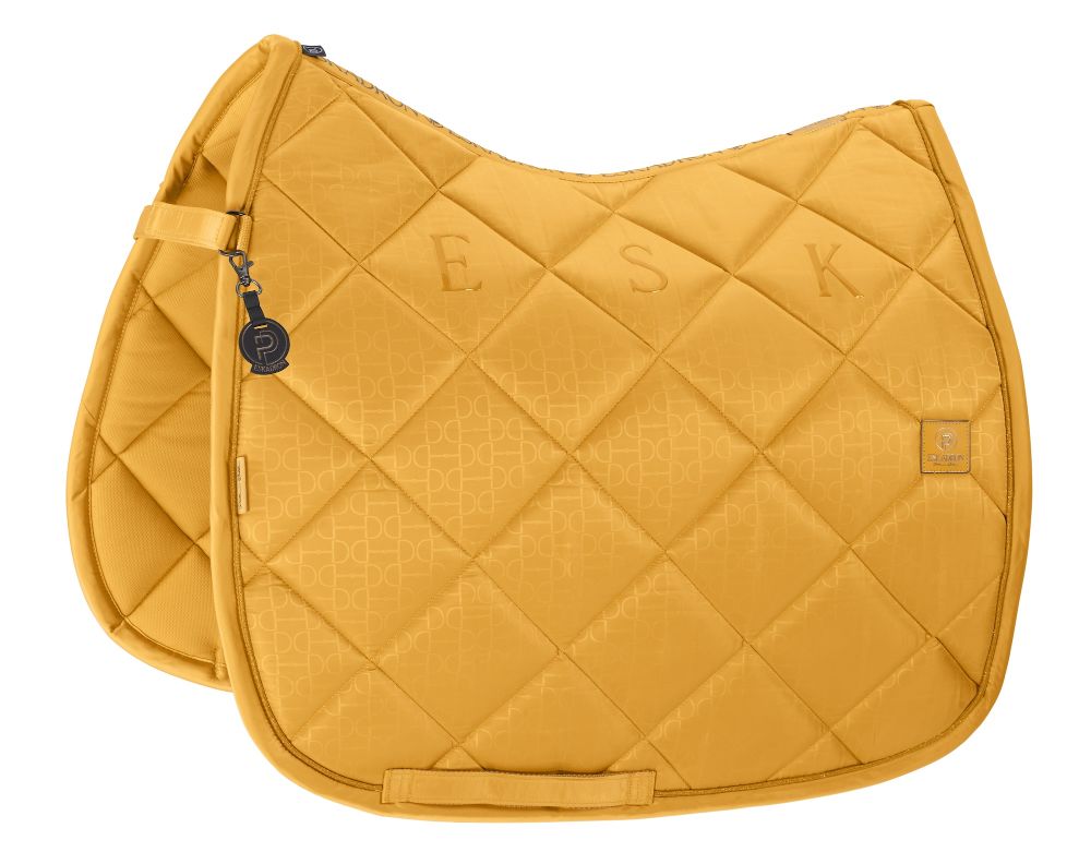 unempfindliches Glossy-Obermaterial und Cool-Dry Unterseitevoluminöse, große Steppung mit Allover-Gebiss PrintAnti-Slip Silikonflächen im Sattelbereichelegante Lurex-Biese auf Glossy-EinfassungPlatinum-Emblem, beidseitigdekorativer Schriftzug auf dem RückenbandInnostrap-System für optimale FrontfixierungGurtschlaufe mit dreifacher Fixierungsoption für exakte Positionierung